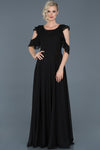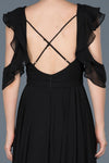 Black, Strap Sleeves, Plain Colour, Chiffon, Maxi Dress, A-Line Dress