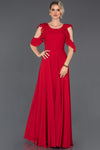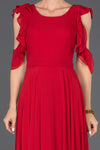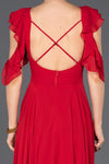 Red, Strap Sleeves, Plain Colour, Chiffon, Maxi Dress, A-Line Dress