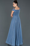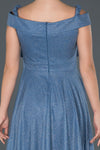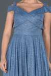 Blue, Off-Shoulder Sleeves, Shimmer, Shiny, Silvery Tulle, Maxi Dress, A-Line Dress