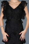 Black, Sleeveless , Embroidered, Lace & Sequins, Maxi Dress, Mermaid Dress