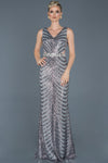 Grey, Sleeveless, Shimmer, Shiny, Sequins Tulle, Maxi Dress, Mermaid Dress, Evening Dresses