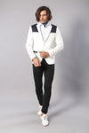 Double buttons, Pointed collar, 6 drop, single vent, patterned chest