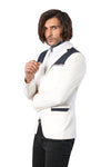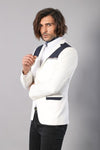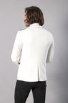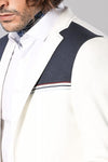 Product Detail Double buttons, Pointed collar, 6 drop, single vent, patterned chest White 62% polyester 35% viscose 3% elastane Slimfit Jacket Height: 189  Weight: 82  Shoulder: 98  Chest: 96   Hip: 94