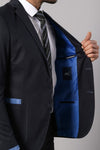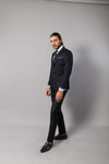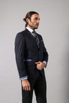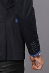 Product Detail Double buttons, pointed collar, 6 drop, double vents Navy blue 62% polyester 35% viscose 3% elastane Slimfit Jacket Height: 189  Weight: 82  Shoulder: 98  Chest: 96   Hip: 94