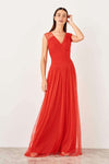 Orange, Sleeveless, Plain Colour, Tulle, A-Line Dress
