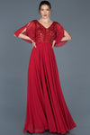 Red, Short Sleeves, Shimmer, Shiny, Chiffon & Sequins, Maxi Dress, A-Line Dress, Evening Dresses