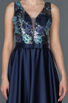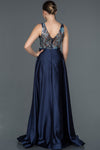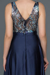 Navy Blue, Sleeveless, Shimmer, Shiny, Embroidered, Satin, Maxi Dress, A-Line Dress, Evening Dresses