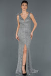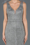 Grey, Sleeveless, Shimmer, Shiny, Embroidered, Lace & Sequins, Maxi Dress, Mermaid Dress, Evening Dresses