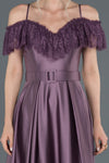 Purple, Off-Shoulder Sleeves, Shimmer, Shiny, Satin, Maxi Dress, A-Line Dress, Evening Dresses