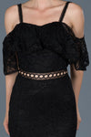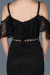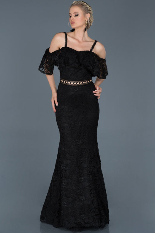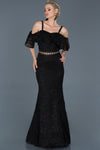 Black, Off-Shoulder Sleeves, Embroidered, Lace, Maxi Dress, Mermaid Dress, Evening Dresses