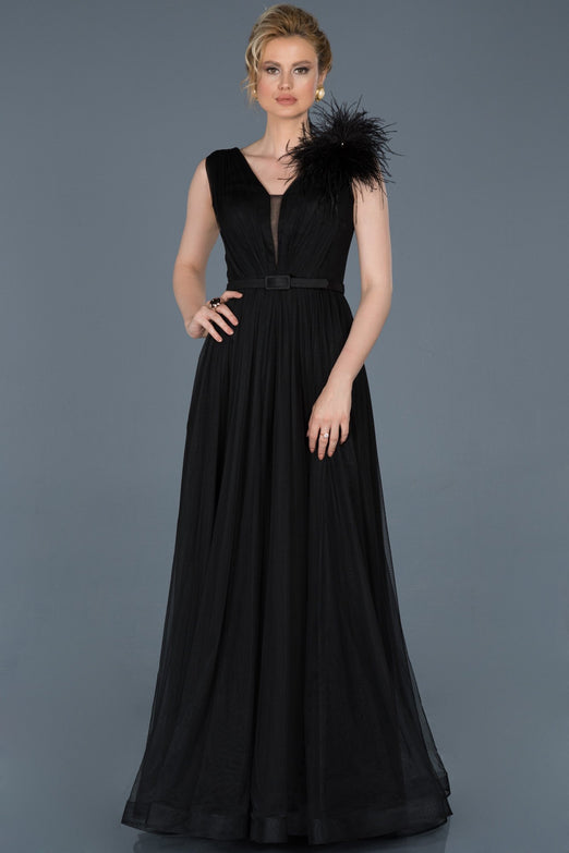 Black, Sleeveless , Plain Colour, Tulle, Maxi Dress, A-Line Dress, Evening Dresses