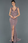 Pink, Sleeveless, Shimmer, Shiny, Embroidered, Sequined Lace, Maxi Dress, Slit Dress, Mermaid Dress, Evening Dresses