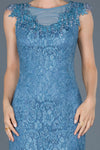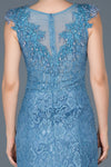Blue, Cap Sleeves, Embroidered, Lace, Shimmer, Maxi Dress, Mermaid Dress, Evening Dresses