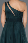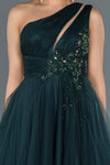 Green, One Sleeve, Plain Colour, Embroidered, Embroidered Tulle, Maxi Dress, Princess Dress, A-Line Dress, One Sleeve Dress, Evening Dresses