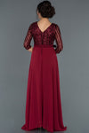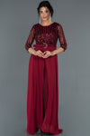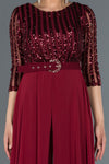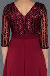 Burgundy, 3/4 Sleeves, Shimmer, Shiny, Sequined Tulle & Chiffon, Maxi Dress, A-Line Dress, Evening Dresses