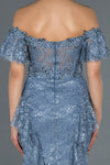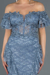 Blue, Strapless, Off-Shoulder Sleeves, Embroidered, Shimmer, Shiny, Sequined Lace, Maxi Dress, Mermaid Dress, Evening Dresses