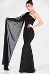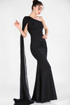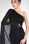 Black, One Shoulder Sleeve, Plain Dress, Mermaid Dress, Maxi Dress