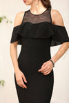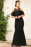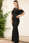 Black, Off-Shoulder Sleeves, Shimmer Dress, Mermaid Dress, Maxi Dress
