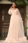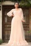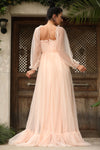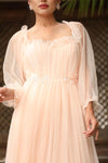 Pink, Long Sleeves, Tulle Dress, A-Line Dress, Maxi Dress