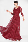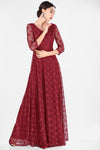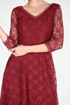 Burgundy, 3/4 Sleeves, Lace Dress, A-Line Dress, Maxi Dress