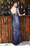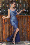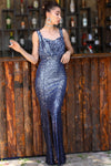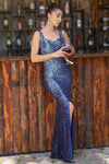 Navy Blue, Sleeveless, Sequins Dress, Slit Dress, Sheath Dress, Maxi Dress