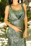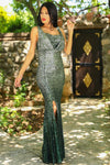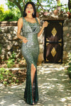 Green, Sleeveless, Sequins Dress, Slit Dress, Sheath Dress, Maxi Dress