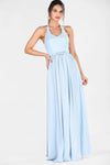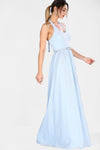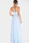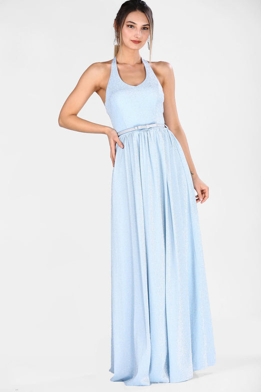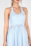 Blue, Sleeveless, Plain Dress, Halterneck Dress, Maxi Dress