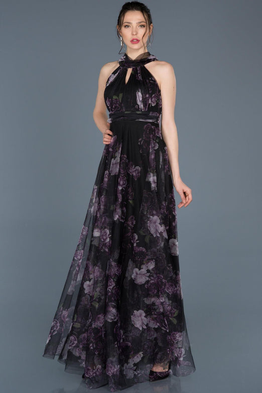 Black, Sleeveless, Floral, Tulle, A-Line Dress, Maxi Dress