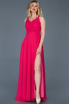 Pink, Sleeveless, Plain Colour, Chiffon, A-Line Dress, Slit Dress, Maxi Dress