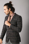 Design: Peak lapel, two button, 6 drop, plaid, double vents