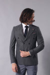 Details: Two button, peak lapel, double breasted