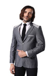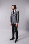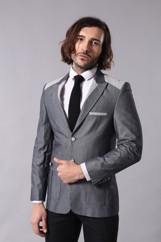 Product DetailGreySlim FitPattern: Shoulder patternedBlazer JacketDrop 6Details: Two button, peak lapelFabric Content: 65% Polyester 35% Viscose