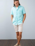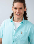 70% Cotton 30% Linen Aqua Relaxed Fit US POLO ASSN Men Shirt Height 188 Weight 77 Chest 98 Waist 82 Hip 97 Product Size M