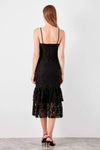 Black, Strap Sleeves, Lace, Midi Dress, Sheath Dress, Tiered Dress