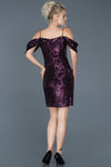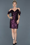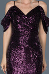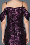 Purple, Off-Shoulder Sleeves, Shimmer, Shiny, Sequin, Above Knee, Sheath Dress