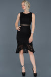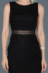 Black, Sleeveless, Embroidered, Lace, Above Knee, Sheath Dress, Asymmetrical Dress