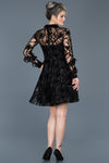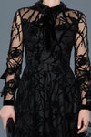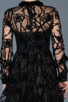 Black, Long Sleeves, Patterned, Tulle & Velvet, Above Knee, A-Line Dress