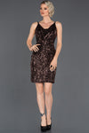 Copper, Strap Sleeves, Shimmer, Shiny, Velvet, Sequins, Above Knee, Sheath Dress
