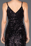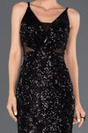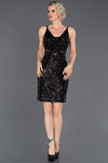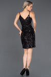 Black, Strap Sleeves, Shimmer, Shiny, Velvet, Sequins, Above Knee, Sheath Dress