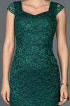 Green, Cap Sleeves, Embroidered, Lace, Knee Length, Sheath Dress
