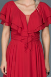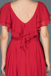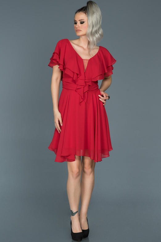 Red, Short Sleeves, Plain Colour, Chiffon, Above Knee, A-Line Dress