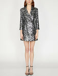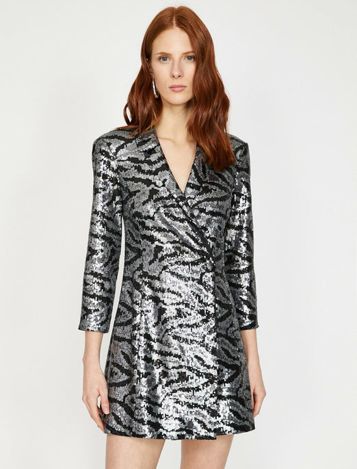 Silver, 3/4 Sleeves, Shimmer, Shiny, Mini Dress, Jacket Dress