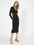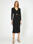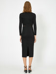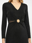 Black, Long Sleeves, Shimmer, Shiny, Midi Dress, Sheath Dress, Shirt Dress