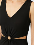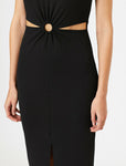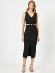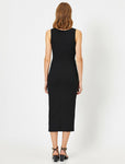 Black, Sleeveless, Plain Colour, Midi Dress, Sheath Dress