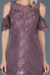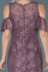 Pink, Off-Shoulder Sleeves, Embroidered, Lace, Midi Dress, Sheath Dress