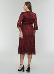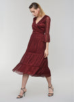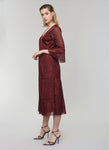 Burgundy, 3/4 Sleeves, Shimmer, Shiny, Midi Dress, A-Line Dress