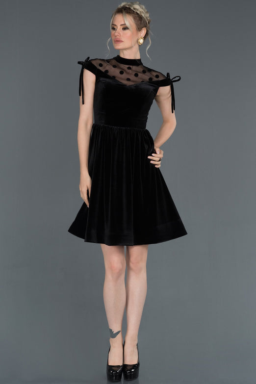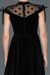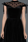 Black, Cap Sleeves, Patterned, Velvet & Tulle, Above Knee, A-Line Dress, Party Dresses