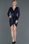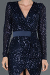 Navy Blue, Long Sleeves, Shimmer, Shiny, Sequins, Mini Dress, Wrap Dress, Sheath Dress, Party Dresses