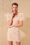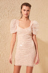 Pink, Short Sleeves, Shimmer, Sequins, Above Knee, Sheath Dress