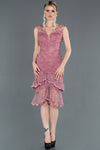 Pink, Sleeveless , Embroidered, Lace Tulle , Knee Length, Tiered Dress, Mermaid Dress, Party Dresses